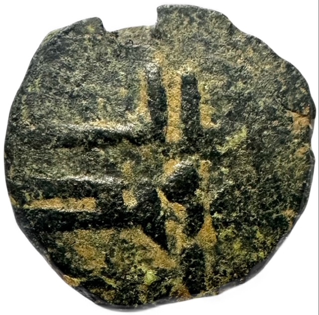 This coin also stands out for its exceptionally small denomination, weighing only 0.6 g, making it one of the lightest examples known.This coin likely dates to the post-reform period under Caliph ŹæAbd al-Malik ibn Marwān (685–705 CE), specifically after 77 AH / 697 CE. During this period, relations between the Islamic administration and Jewish communities were estimated to be favorable. Notably, ŹæAbd al-Malik is recorded to have employed a Jewish minister named Someir (The Jewish Encyclopedia, 1906).