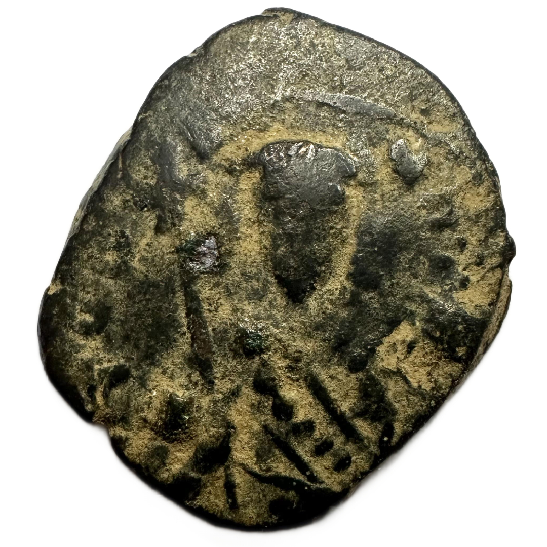 Obv: Crowned facing bust, holding cruciform scepter and globus cruciger