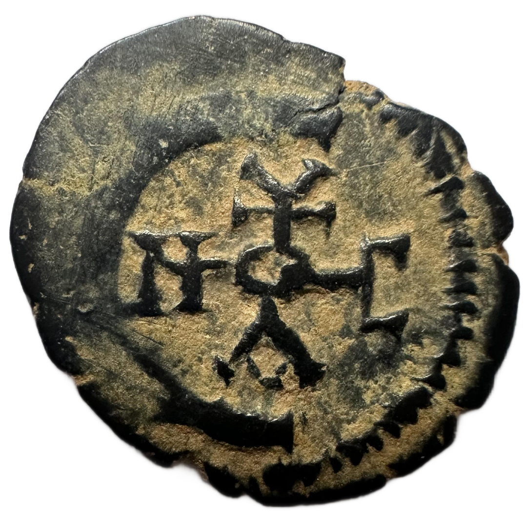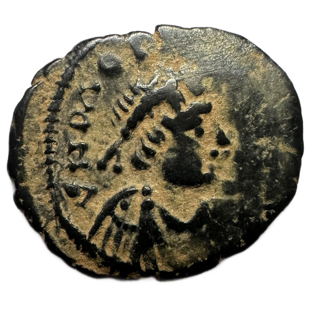 Note: Struck at Theoupolis (Antioch), this coin represents the smallest everyday denomination of his vast coinage system. These modest bronzes circulated widely in daily markets, linking ordinary life in Syria with the power of Constantinople. Despite its humble value, it testifies to Justinian’s far-reaching monetary reforms and his empire’s resilience after Antioch’s devastating earthquake of AD 526.